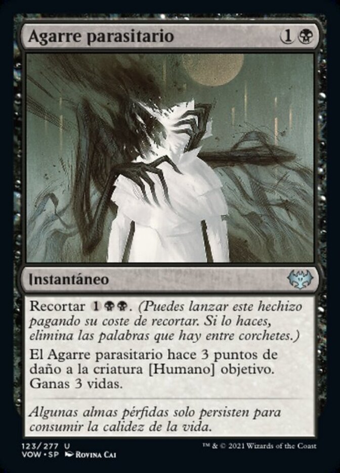 | Rules | Cleave (You may cast this spell for its cleave cost. If you do, remove the words in square brackets.) Parasitic Grasp deals 3 damage to target [Human] creature. You gain 3 life. |