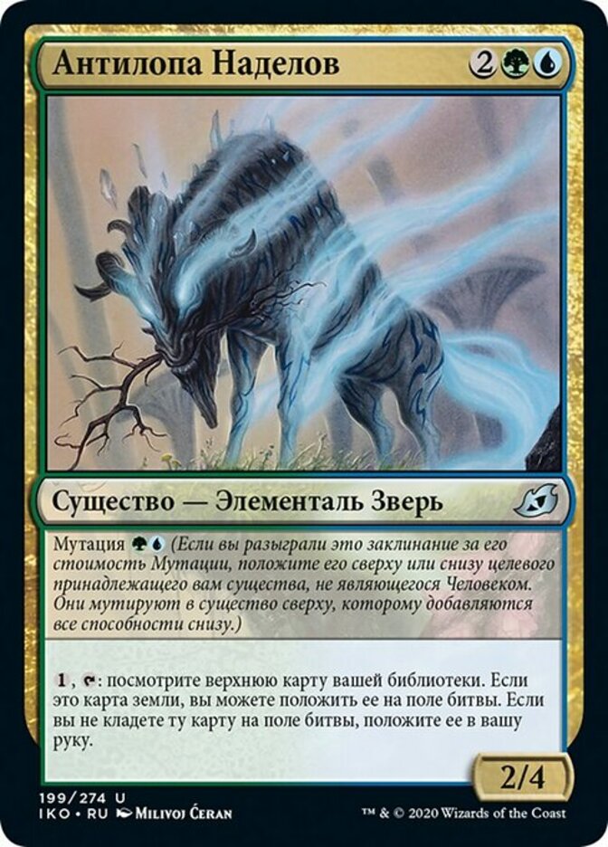 | Rules | Mutate (If you cast this spell for its mutate cost, put it over or under target non-Human creature you own. They mutate into the creature on top plus all abilities from under it.) , : Look at the top card of your library. If it's a land card, you may put it onto the battlefield. If you don't put the card onto the battlefield, put it into your hand. |