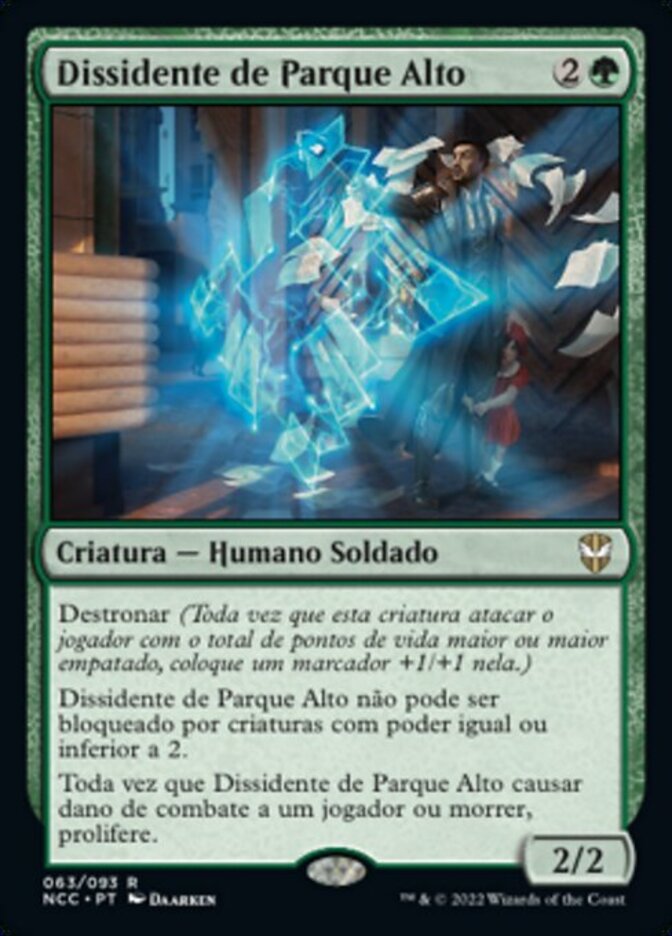 | Rules | Dethrone (Whenever this creature attacks the player with the most life or tied for most life, put a +1/+1 counter on it.) Park Heights Maverick can't be blocked by creatures with power 2 or less. Whenever Park Heights Maverick deals combat damage to a player or dies, proliferate. |