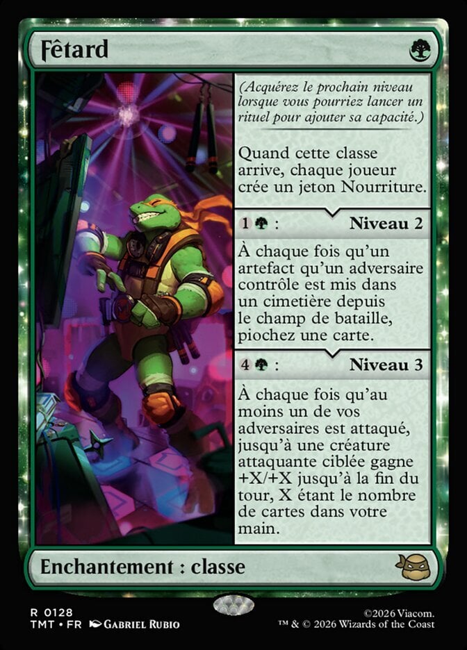 | Rules | (Gain the next level as a sorcery to add its ability.) When this Class enters, each player creates a Food token. : Level 2 Whenever an artifact an opponent controls is put into a graveyard from the battlefield, draw a card. : Level 3 Whenever one or more of your opponents are attacked, up to one target attacking creature gets +X/+X until end of turn, where X is the number of cards in your hand. |