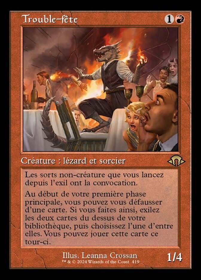 | Rules | Noncreature spells you cast from exile have convoke. (Each creature you tap while casting a noncreature spell from exile pays for or one mana of that creature's color.) At the beginning of your precombat main phase, you may discard a card. If you do, exile the top two cards of your library, then choose one of them. You may play that card this turn. |