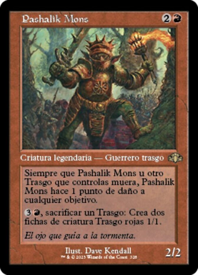 | Rules | Whenever Pashalik Mons or another Goblin you control dies, Pashalik Mons deals 1 damage to any target. , Sacrifice a Goblin: Create two 1/1 red Goblin creature tokens. |