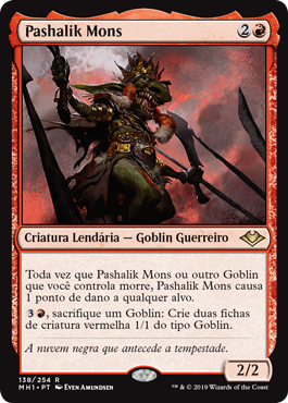 | Rules | Whenever Pashalik Mons or another Goblin you control dies, Pashalik Mons deals 1 damage to any target. , Sacrifice a Goblin: Create two 1/1 red Goblin creature tokens. |