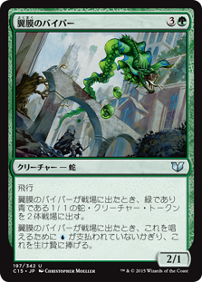 | Rules | Flying When Patagia Viper enters the battlefield, create two 1/1 green and blue Snake creature tokens. When Patagia Viper enters the battlefield, sacrifice it unless was spent to cast it. |