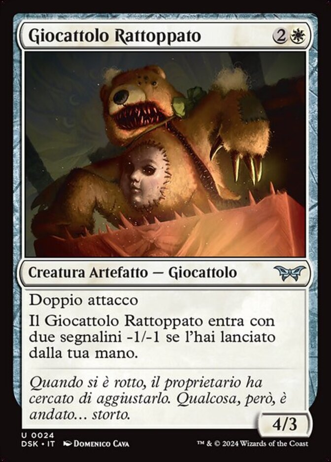 | Rules | Double strike Patched Plaything enters with two -1/-1 counters on it if you cast it from your hand. |