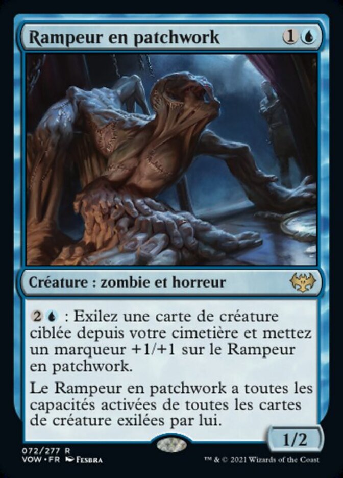 | Rules | : Exile target creature card from your graveyard and put a +1/+1 counter on Patchwork Crawler. Patchwork Crawler has all activated abilities of all creature cards exiled with it. |