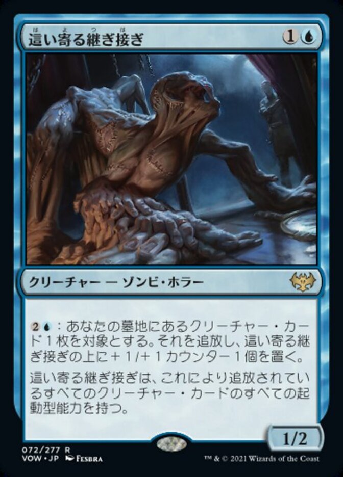 | Rules | : Exile target creature card from your graveyard and put a +1/+1 counter on Patchwork Crawler. Patchwork Crawler has all activated abilities of all creature cards exiled with it. |