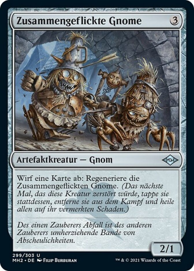 | Rules | Discard a card: Regenerate Patchwork Gnomes. (The next time this creature would be destroyed, instead tap it, remove it from combat, and heal all damage on it.) |