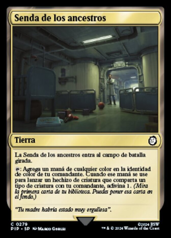 | Rules | Path of Ancestry enters the battlefield tapped. : Add one mana of any color in your commander's color identity. When that mana is spent to cast a creature spell that shares a creature type with your commander, scry 1. (Look at the top card of your library. You may put that card on the bottom of your library.) |