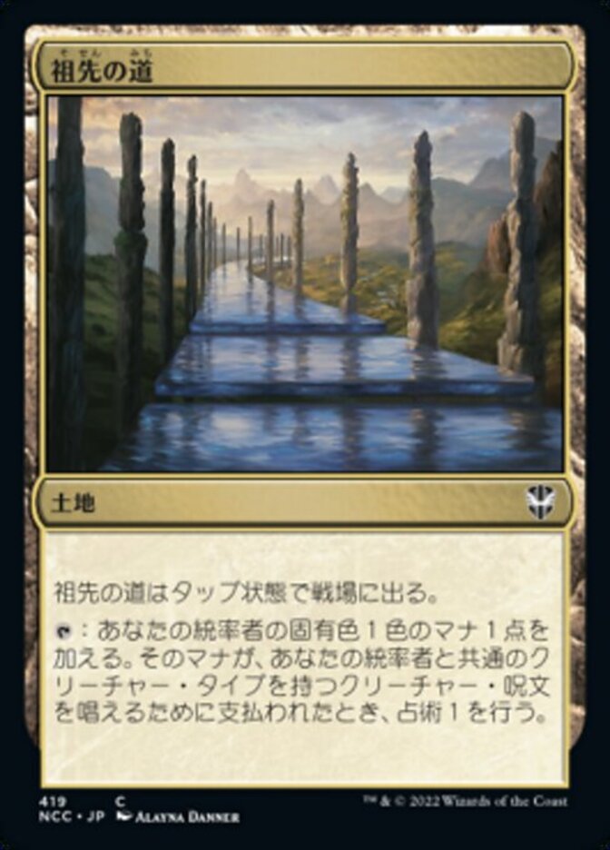 | Rules | Path of Ancestry enters the battlefield tapped. : Add one mana of any color in your commander's color identity. When that mana is spent to cast a creature spell that shares a creature type with your commander, scry 1. (Look at the top card of your library. You may put that card on the bottom of your library.) |
