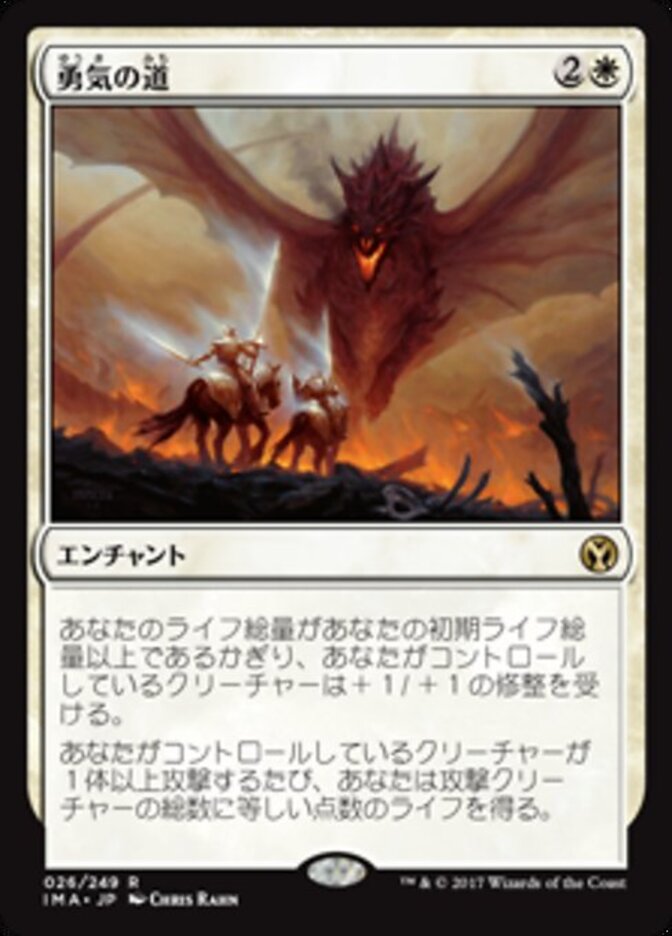 | Rules | As long as your life total is greater than or equal to your starting life total, creatures you control get +1/+1. Whenever one or more creatures you control attack, you gain life equal to the number of attacking creatures. |