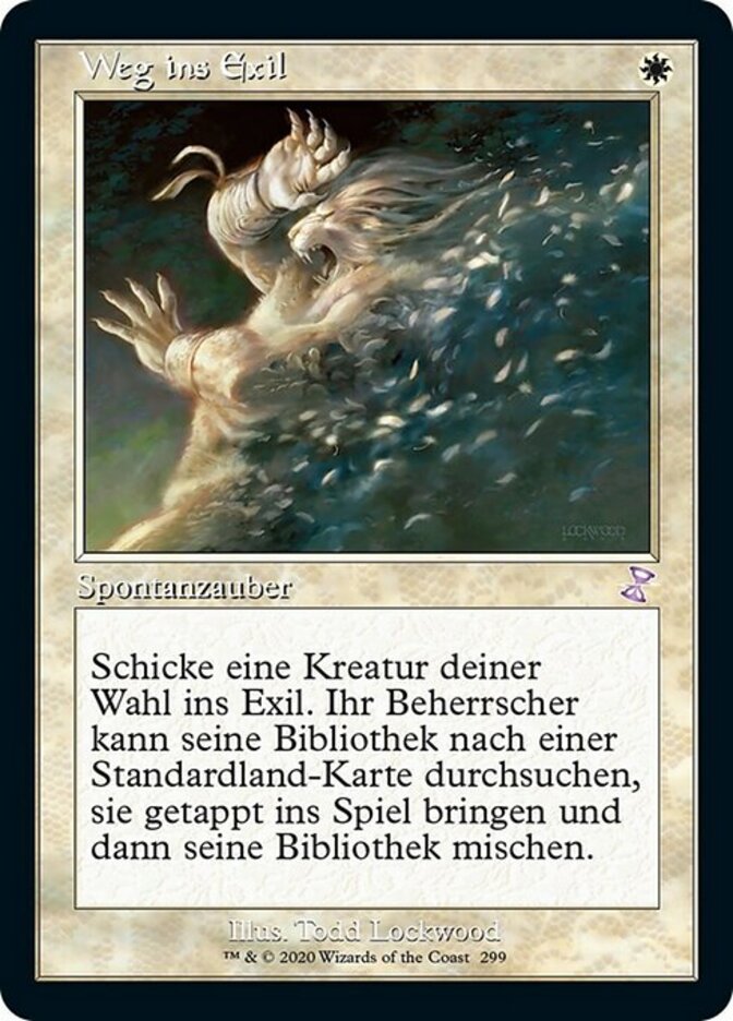 | Rules | Exile target creature. Its controller may search their library for a basic land card, put that card onto the battlefield tapped, then shuffle. |