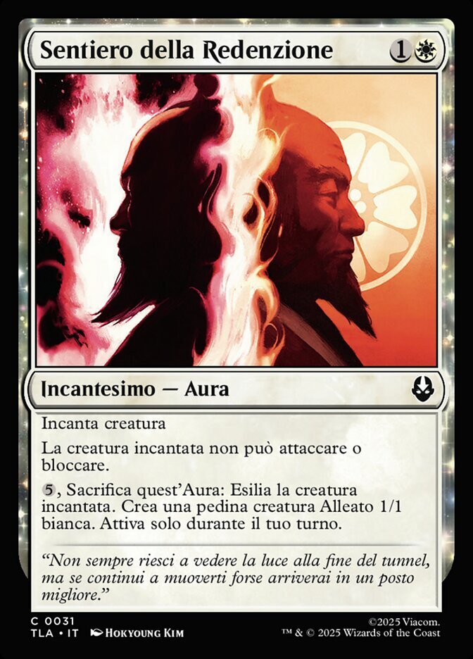 | Rules | Enchant creature Enchanted creature can't attack or block. , Sacrifice this Aura: Exile enchanted creature. Create a 1/1 white Ally creature token. Activate only during your turn. |