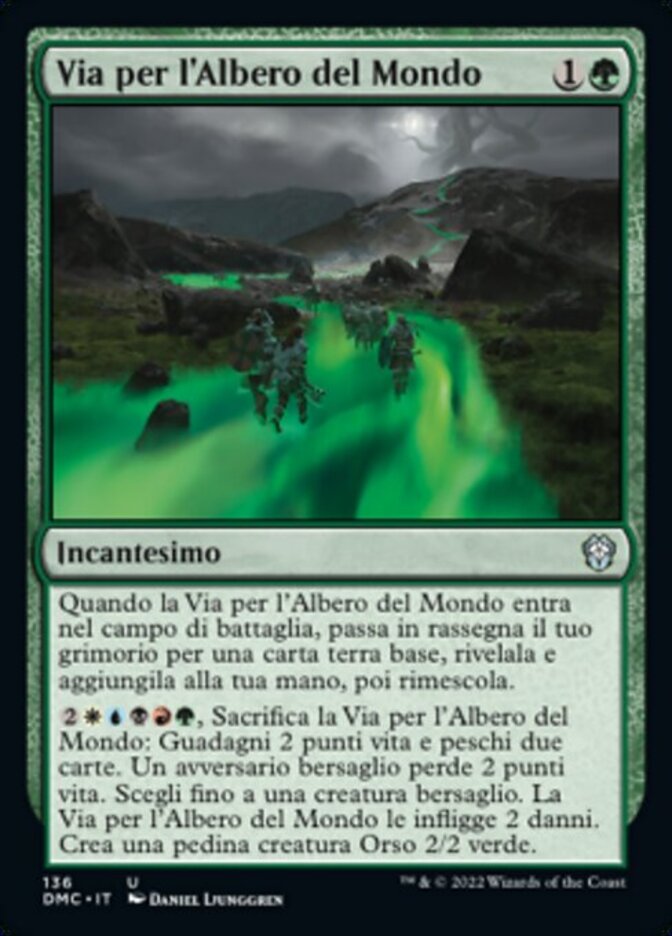 | Rules | When Path to the World Tree enters the battlefield, search your library for a basic land card, reveal it, put it into your hand, then shuffle. , Sacrifice Path to the World Tree: You gain 2 life and draw two cards. Target opponent loses 2 life. Path to the World Tree deals 2 damage to up to one target creature. You create a 2/2 green Bear creature token. |