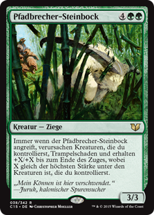 | Rules | Whenever Pathbreaker Ibex attacks, creatures you control gain trample and get +X/+X until end of turn, where X is the greatest power among creatures you control. |