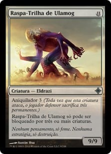 | Rules | Annihilator 3 (Whenever this creature attacks, defending player sacrifices three permanents.) Pathrazer of Ulamog can't be blocked except by three or more creatures. |