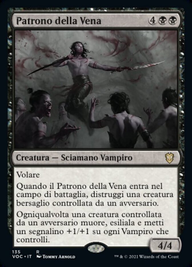 | Rules | Flying When Patron of the Vein enters the battlefield, destroy target creature an opponent controls. Whenever a creature an opponent controls dies, exile it and put a +1/+1 counter on each Vampire you control. |