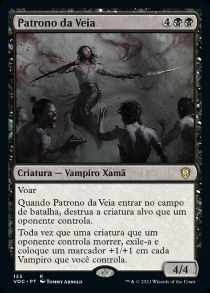 | Rules | Flying When Patron of the Vein enters the battlefield, destroy target creature an opponent controls. Whenever a creature an opponent controls dies, exile it and put a +1/+1 counter on each Vampire you control. |