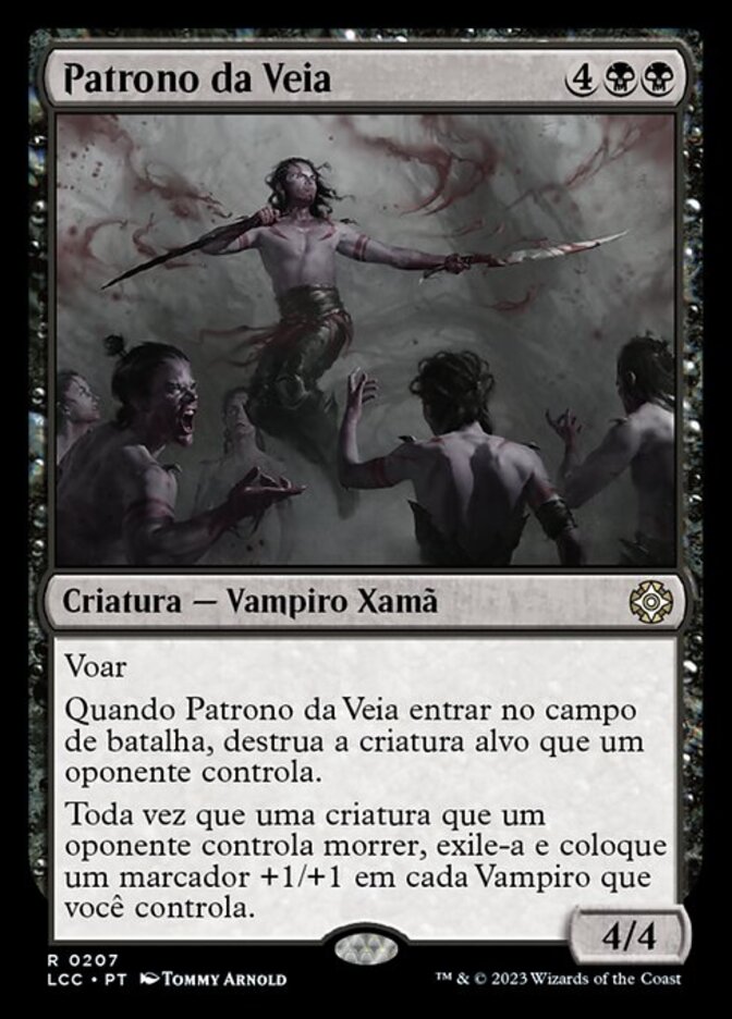 | Rules | Flying When Patron of the Vein enters the battlefield, destroy target creature an opponent controls. Whenever a creature an opponent controls dies, exile it and put a +1/+1 counter on each Vampire you control. |