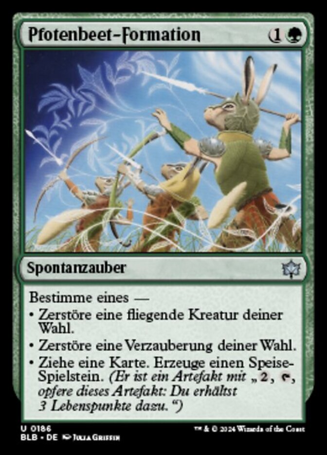 | Rules | Choose one — • Destroy target creature with flying. • Destroy target enchantment. • Draw a card. Create a Food token. (It's an artifact with ", , Sacrifice this artifact: You gain 3 life.") |