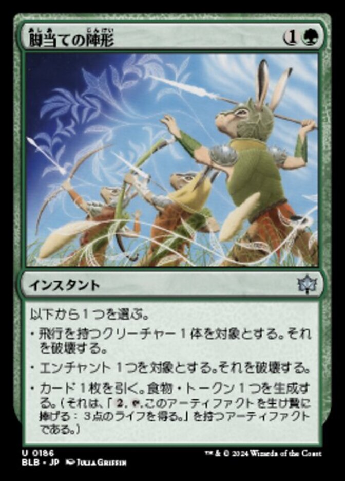 | Rules | Choose one — • Destroy target creature with flying. • Destroy target enchantment. • Draw a card. Create a Food token. (It's an artifact with ", , Sacrifice this artifact: You gain 3 life.") |