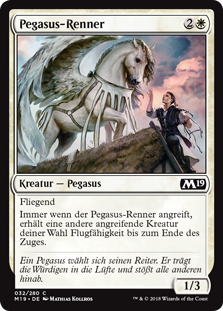 | Rules | Flying Whenever Pegasus Courser attacks, another target attacking creature gains flying until end of turn. |