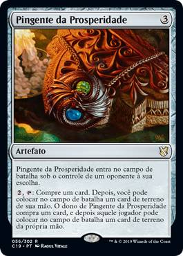 | Rules | Pendant of Prosperity enters the battlefield under the control of an opponent of your choice. , : Draw a card, then you may put a land card from your hand onto the battlefield. Pendant of Prosperity's owner draws a card, then that player may put a land card from their hand onto the battlefield. |