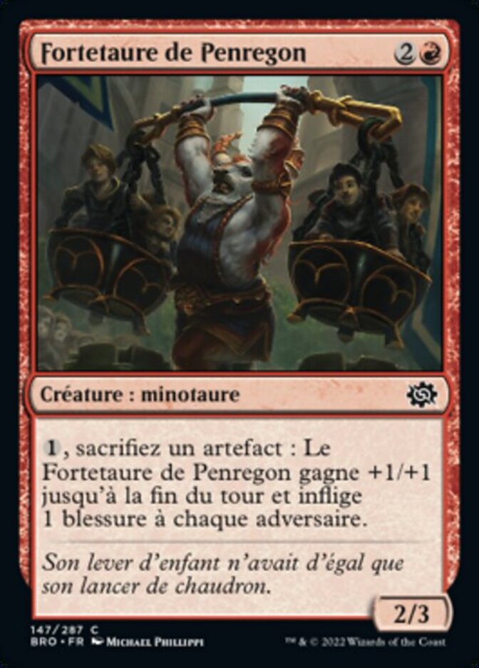 | Rules | , Sacrifice an artifact: Penregon Strongbull gets +1/+1 until end of turn and deals 1 damage to each opponent. |