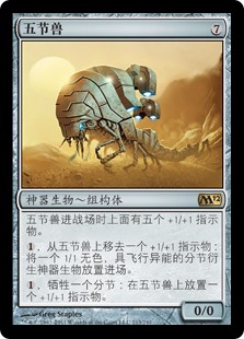 | Rules | Pentavus enters the battlefield with five +1/+1 counters on it. , Remove a +1/+1 counter from Pentavus: Create a 1/1 colorless Pentavite artifact creature token with flying. , Sacrifice a Pentavite: Put a +1/+1 counter on Pentavus. |