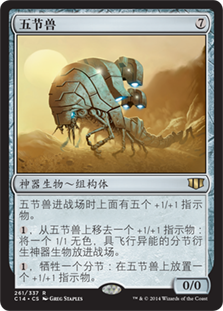 | Rules | Pentavus enters the battlefield with five +1/+1 counters on it. , Remove a +1/+1 counter from Pentavus: Create a 1/1 colorless Pentavite artifact creature token with flying. , Sacrifice a Pentavite: Put a +1/+1 counter on Pentavus. |