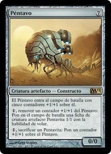 | Rules | Pentavus enters the battlefield with five +1/+1 counters on it. , Remove a +1/+1 counter from Pentavus: Create a 1/1 colorless Pentavite artifact creature token with flying. , Sacrifice a Pentavite: Put a +1/+1 counter on Pentavus. |