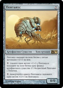 | Rules | Pentavus enters the battlefield with five +1/+1 counters on it. , Remove a +1/+1 counter from Pentavus: Create a 1/1 colorless Pentavite artifact creature token with flying. , Sacrifice a Pentavite: Put a +1/+1 counter on Pentavus. |