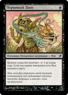 | Rules | Target creature gets -1/-1 until end of turn. If you control a Faerie, draw a card. |