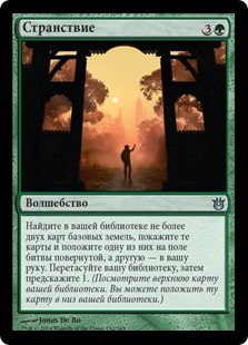 | Rules | Search your library for up to two basic land cards, reveal those cards, and put one onto the battlefield tapped and the other into your hand. Shuffle, then scry 1. (Look at the top card of your library. You may put that card on the bottom of your library.) |