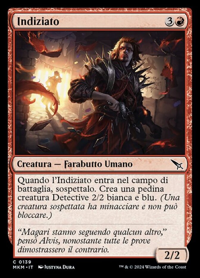 | Rules | When Person of Interest enters the battlefield, suspect it. Create a 2/2 white and blue Detective creature token. (A suspected creature has menace and can't block.) |