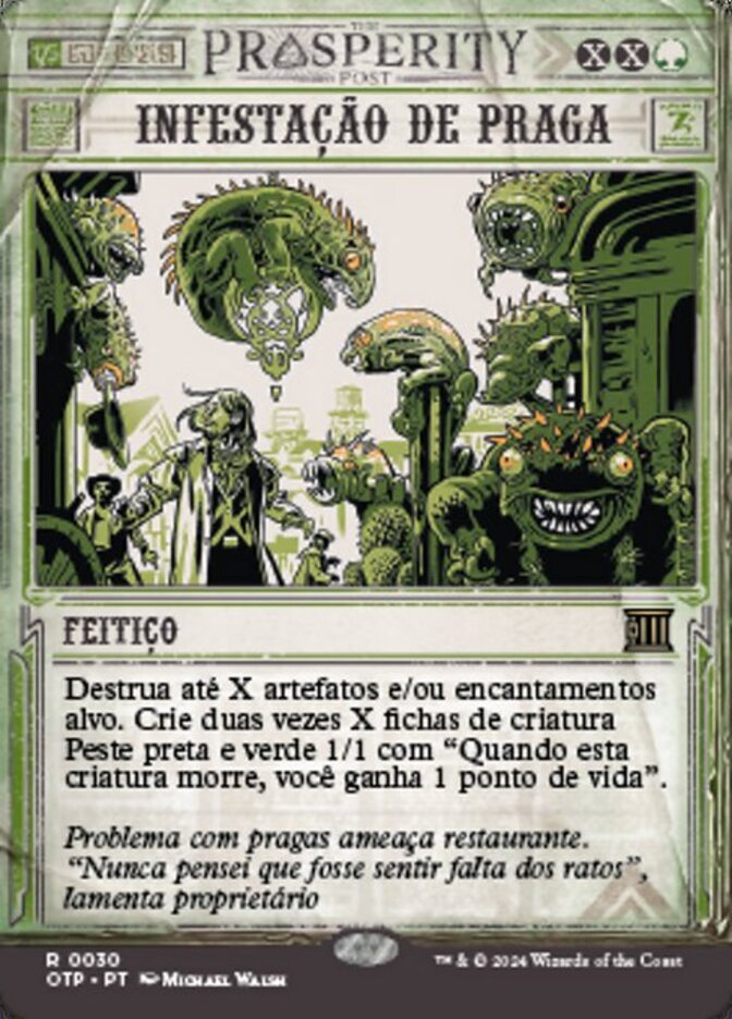 | Rules | Destroy up to X target artifacts and/or enchantments. Create twice X 1/1 black and green Pest creature tokens with "When this creature dies, you gain 1 life." |
