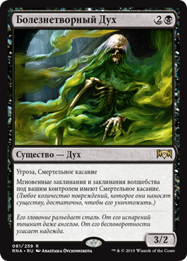| Rules | Menace, deathtouch Instant and sorcery spells you control have deathtouch. (Any amount of damage they deal to a creature is enough to destroy it.) |