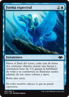 | Rules | Until end of turn, up to two target creatures each have base power and toughness 3/3, gain flying, and become blue Illusions in addition to their other colors and types. Draw a card. |