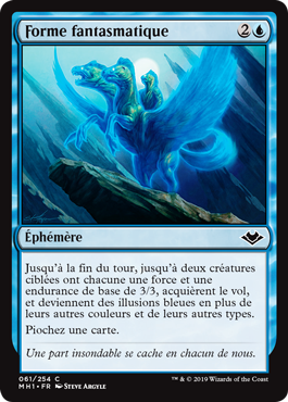 | Rules | Until end of turn, up to two target creatures each have base power and toughness 3/3, gain flying, and become blue Illusions in addition to their other colors and types. Draw a card. |