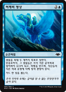 | Rules | Until end of turn, up to two target creatures each have base power and toughness 3/3, gain flying, and become blue Illusions in addition to their other colors and types. Draw a card. |
