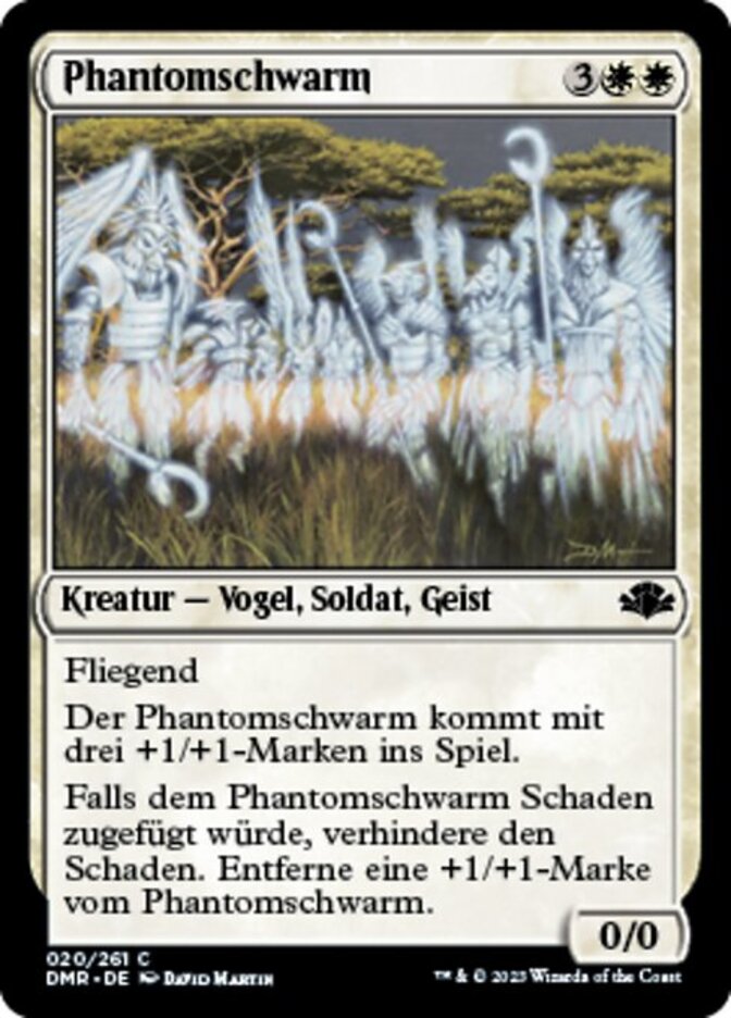 | Rules | Flying Phantom Flock enters the battlefield with three +1/+1 counters on it. If damage would be dealt to Phantom Flock, prevent that damage. Remove a +1/+1 counter from Phantom Flock. |