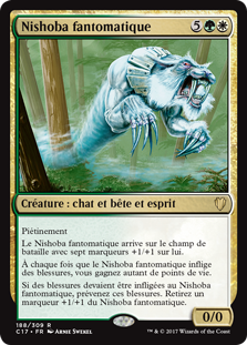| Rules | Trample Phantom Nishoba enters the battlefield with seven +1/+1 counters on it. Whenever Phantom Nishoba deals damage, you gain that much life. If damage would be dealt to Phantom Nishoba, prevent that damage. Remove a +1/+1 counter from Phantom Nishoba. |