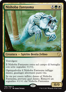 | Rules | Trample Phantom Nishoba enters the battlefield with seven +1/+1 counters on it. Whenever Phantom Nishoba deals damage, you gain that much life. If damage would be dealt to Phantom Nishoba, prevent that damage. Remove a +1/+1 counter from Phantom Nishoba. |