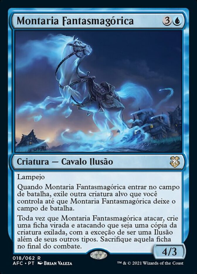 | Rules | Flash When Phantom Steed enters the battlefield, exile another target creature you control until Phantom Steed leaves the battlefield. Whenever Phantom Steed attacks, create a tapped and attacking token that's a copy of the exiled card, except it's an Illusion in addition to its other types. Sacrifice that token at end of combat. |