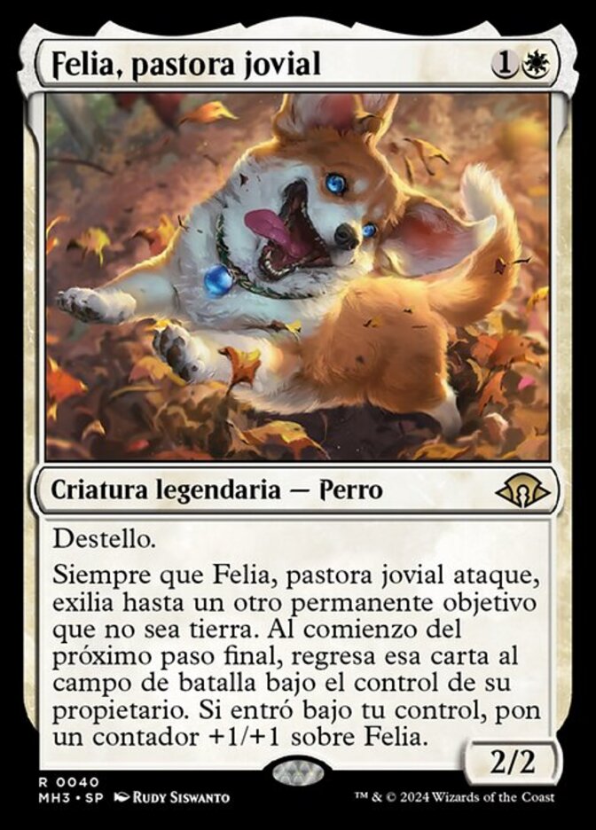 | Rules | Flash Whenever Phelia, Exuberant Shepherd attacks, exile up to one other target nonland permanent. At the beginning of the next end step, return that card to the battlefield under its owner's control. If it entered under your control, put a +1/+1 counter on Phelia. |