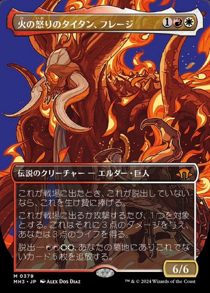 | Rules | When Phlage enters the battlefield, sacrifice it unless it escaped. Whenever Phlage enters the battlefield or attacks, it deals 3 damage to any target and you gain 3 life. Escape—, Exile five other cards from your graveyard. (You may cast this card from your graveyard for its escape cost.) |