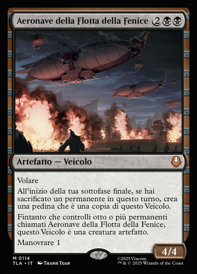 | Rules | Flying At the beginning of your end step, if you sacrificed a permanent this turn, create a token that's a copy of this Vehicle. As long as you control eight or more permanents named Phoenix Fleet Airship, this Vehicle is an artifact creature. Crew 1 |