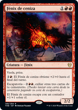 | Rules | Flying, haste : Phoenix of Ash gets +2/+0 until end of turn. Escape—, Exile three other cards from your graveyard. (You may cast this card from your graveyard for its escape cost.) Phoenix of Ash escapes with a +1/+1 counter on it. |