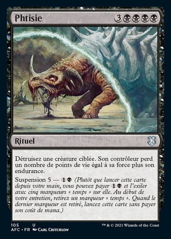 | Rules | Destroy target creature. Its controller loses life equal to its power plus its toughness. Suspend 5— (Rather than cast this card from your hand, you may pay and exile it with five time counters on it. At the beginning of your upkeep, remove a time counter. When the last is removed, cast it without paying its mana cost.) |