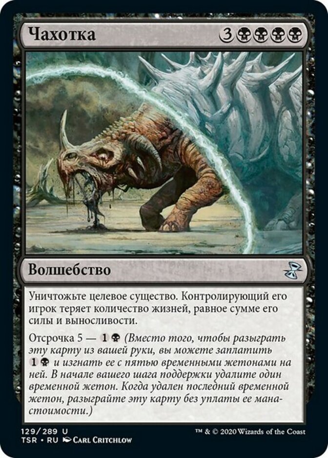 | Rules | Destroy target creature. Its controller loses life equal to its power plus its toughness. Suspend 5— (Rather than cast this card from your hand, you may pay and exile it with five time counters on it. At the beginning of your upkeep, remove a time counter. When the last is removed, cast it without paying its mana cost.) |